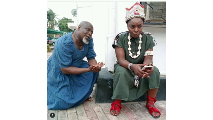 Nollywood went full role reversal with this one. In this Nollywood movie, we see veteran actor Don Brymo Uchegbu playing the role of a pleading 'woman' while Chioma Akpotha plays the role of the 'king'.