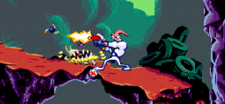 One of the funniest games to come out of the SNES era was this platform game that is bookended by possibly the finest piece of comedy in video game history. In this game, you play an ordinary earthworm named Jim who has a super suit fall on him from space which turns him into a super earthworm who must defeat villains in order to rescue Princess What's-Her-Name. A parody of games at the time, you really can't say enough nice things about this particular instance of video game history.