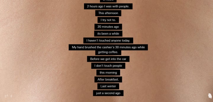 Another site is “www.touched-some1.com” which poses the question ‘When was the last time you touched someone?” and when you submit an answer the site shows you all the previous answers. The most recent answers are sadly people sharing links or promoting things, but if you scroll all the way down to the bottom you’ll see some real answers which I’m sure you’ll enjoy reading!! Both sites mentioned above should still work, try them out!!