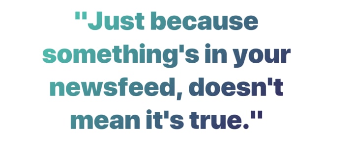 In politics, some fake news sites are using images to their advantage. They share some cool memes, hoping you'll click 'like' on their page to get more of the same. They then start drip-feeding fake news into your newsfeed, and then you're just one unwary moment away from inadvertently sharing it. Just because something's in your newsfeed, doesn't mean it's true.