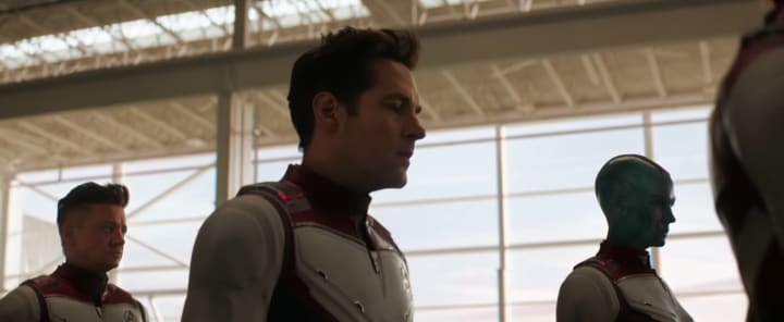 In this shot, we see Scott Lang. The last time we saw him was in the end credits of Ant-Man and the Wasp, when he found himself trapped in the Quantum Realm after Hope, Hank, and Janet disintegrated.