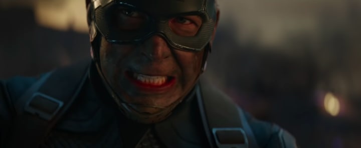 And we have one of our final action shots of the trailer, where we see Captain America pushing really hard against something. This costume does not look much like his Nomad uniform from Infinity War, and looks more like his suit from Winter Soldier.