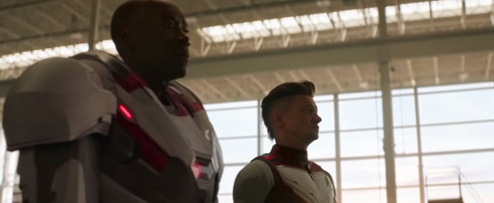 And here, we have confirmation that Clint Barton will indeed be back and fighting alongside the remaining Avengers in this movie. We see him running from a large amount of fire in this shot in an action scene.