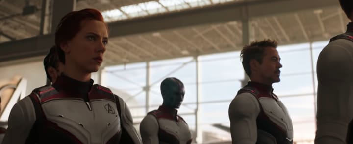And the trailer closes with some epic shots of the remaining Avengers walking together in their headquarters to battle. There are a few things to draw from this. First off, they're wearing white suits with the Avengers logo.