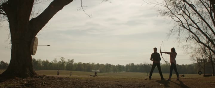 Here, we have a scene of Clint Barton, who was absent from Infinity War, teaching his daughter how to shoot a bow and arrow. From what we saw in Avengers: Age of Ultron, this looks like it's near his house.