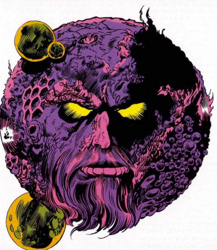 Ego is a planet-sized entity that has immeasurable intelligence, and incalculable strength. It originated like any other planet, coalescing over millions of years from cosmic gasses and dust, but unlike any other known planets, Ego developed consciousness and intelligence. Its stamina and durability are godlike, and it can fly through space at warp speed. Since Ego is essentially a "living planet," it has total control over its entire mass down to the molecular level, meaning it can shift its surface to appear as if it had a giant face or grow enormous tentacles.