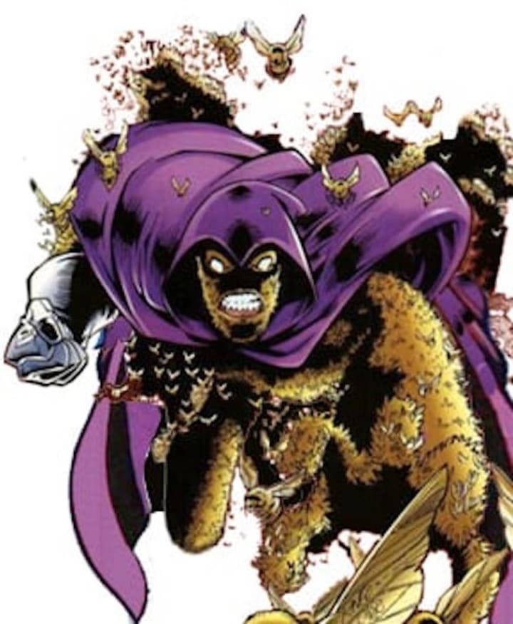 Once a Nazi scientist, Fritz von Meyer fled Germany at the end of World War II to settle in South America where he became a world expert on toxic poisons and bee keeping. After an error causes a group of bees to kill him, von Meyer inadvertently became a composite being of hundreds of thousands of bees driven by a human intelligence. Taking on the name Swarm, he is now technically intangible and can fly through the air or assume any shape and size he desires. Swarm can also mentally influence the actions of other bees and insects, the full range of which may extend over hundreds of yards in radius.