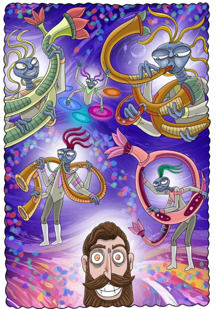 Like the title would suggest, He Lost His Keys in Space follows human ambassador for Earth, Vega Ulysses, whose career ends in a whimper before he is forced to embark upon one last grand adventure thanks to, well, losing his keys. With that, Ulysses ropes his former companion Snax into joining him on his trek across the cosmos in search of what seems to be his one and only set of housekeys.