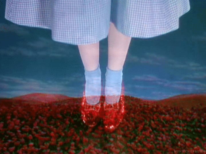 Instead of letting her have her sister's slippers, Glinda poofs them onto Dorothy's feet. Now, we have a young lady who has accidentally murdered this lady's sister, and who is also now in possession of something that rightfully belongs to the so-called Wicked Witch.