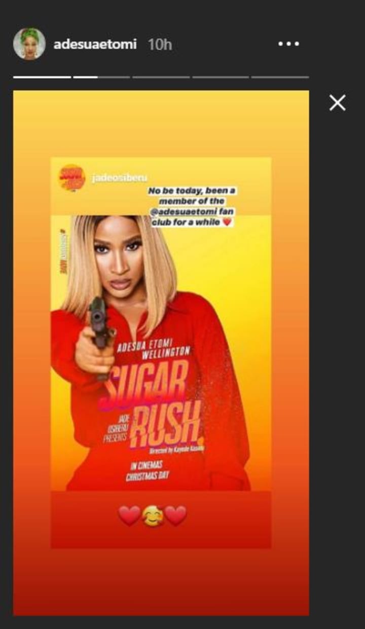 July 3, 2020 was supposed to be a happy day for Nollywood beloved actress, Adesua Etomi Wellington. The 2019 blockbuster movie, Sugar Rush, which she starred in alongside co-stars Bisola Aiyeola and Bimbo Ademoye finally landed on the streaming platform, Netflix.