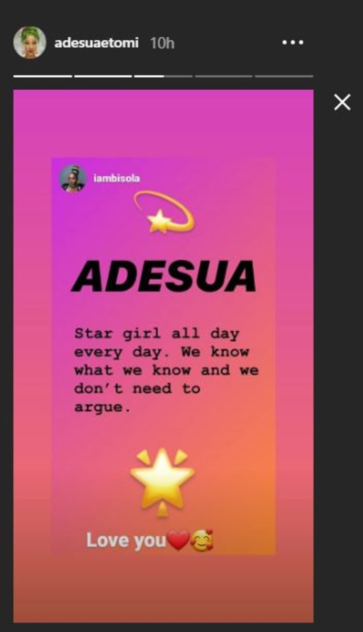 In response to the backlash, Adesua Etomi took to her Twitter to write: