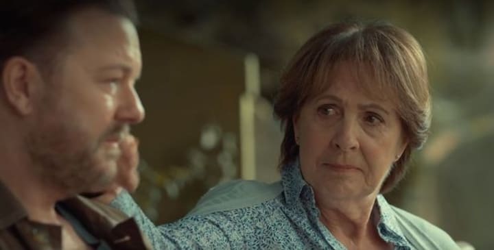 This year Gervais has written, directed and stars in a six-episode, dramedy on Netflix called After Life. Gervais is Tony Johnson, a journalist on a local newspaper whose life spirals into depression when his wife, Lisa ( Kerry Godliman) dies of cancer. Desperately missing her, he watches videos of her daily.