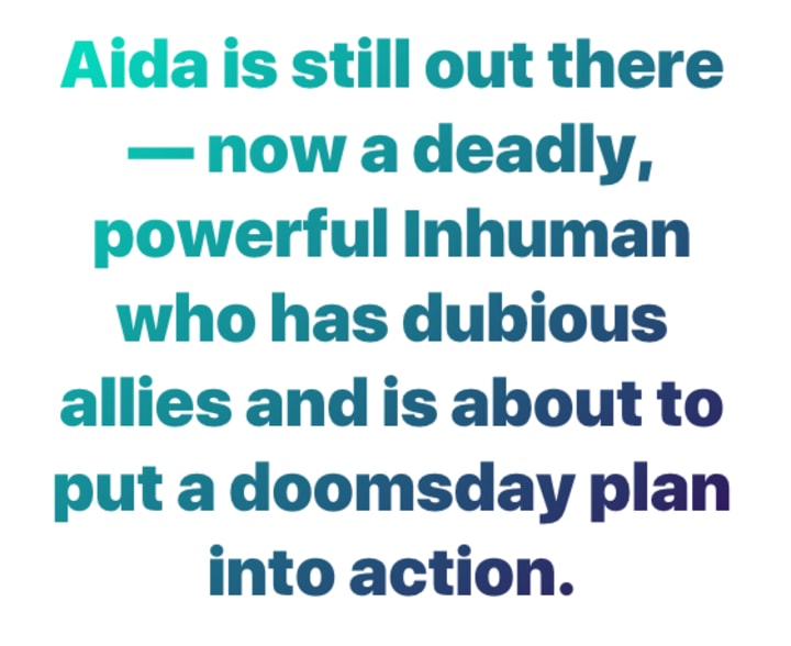 "Yes, I know I said she was a killer android, but she's now a dangerous Inhuman. No, we don't know what her powers are; she seems to have duplicated the abilities of every Inhuman she encountered in a virtual reality world."