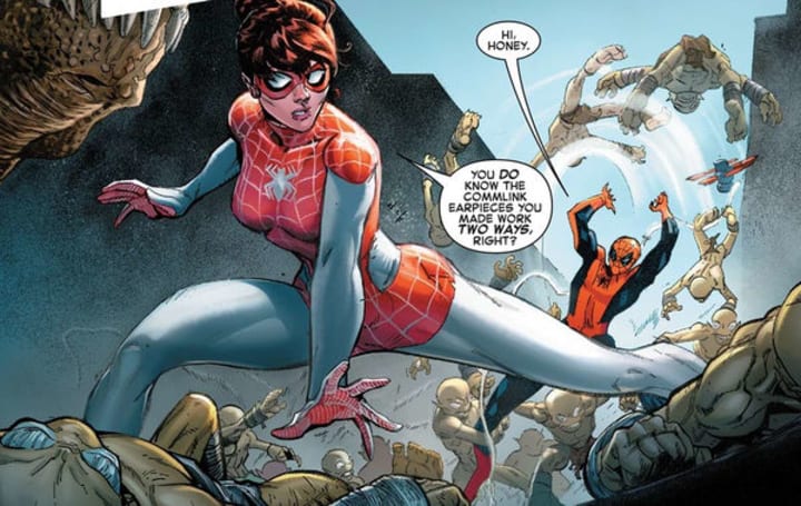 Since then, writer Dan Slott has proved just what he can do with the new status quo, and he's penned some of the most tremendous Spider-Man stories ever; "Spider-Island", "Spider-Verse" and "To The Ends of the Earth" all stand among the best Spider-Man stories to date. But one thing had always been off the table: the Spider-Man marriage. Last year, the events of "Secret Wars" gave Slott a chance to scratch that itch, and — in a fan-favorite issue — he introduced us to a reality where Spider-Man and Mary-Jane were still together, and where they had a child, Annie.