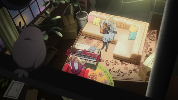 In the grand scheme of things it is a minor gripe, as for the most part the characters are never completely still for too long, and the usage of 3D animation being integrated makes for an incredibly fluid world to dive into. There is an extreme amount of detail present in every frame that it is actually impressive. This shows how lived in the world feels when compared to a lot of other anime that has very standard, interesting backgrounds. Here, these backgrounds do a lot to develop the type of characters they are. The natural feel of Carole's home shows how she is very much creating music organically, while the artificial setting Tao is in shows the mechanical way in which he is manufacturing music.