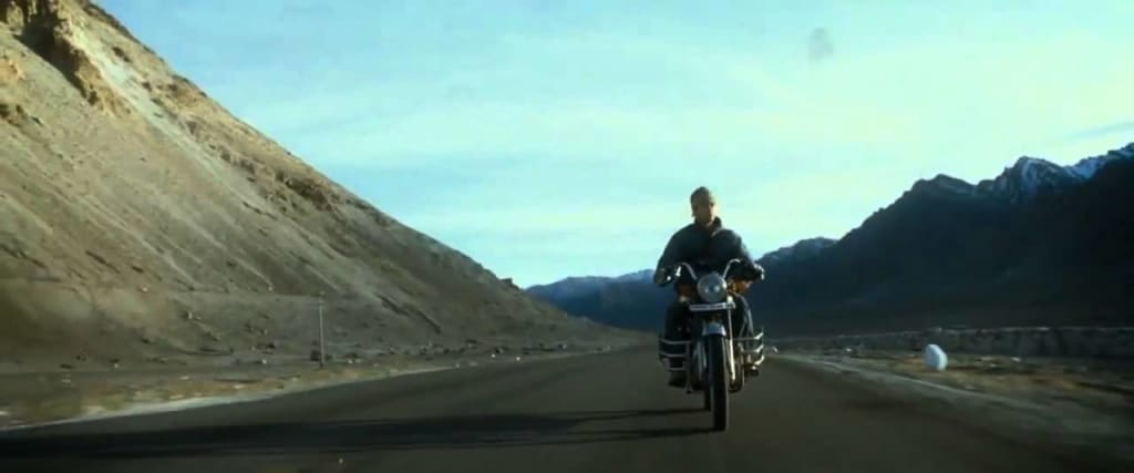 “I hope you see things that startle you, I hope you feel things that you’ve never felt before…” This part of the scene is brilliant in showing the beauty of Benjamin’s travels and how he would sleep, brush his teeth, and move around by motorbike through beautiful mountain passes and rivers. Benjamin wanted his daughter to experience the world and for her to enjoy what it had to offer in her own life. Part of doing just that is adapting to the places you visit and to seek out the adventures yourself in order to make the most of it.