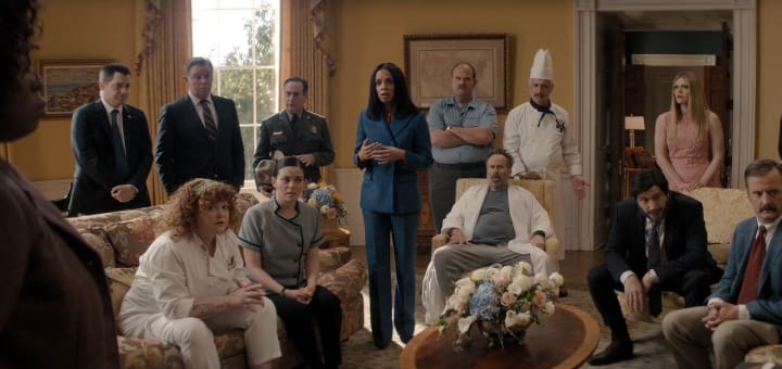 Hit series veteran Shonda Rhimes returns to Netflix and The White House with The Residence, an eight-episode exploration into the death of White House Chief Usher, A.B. Wynter (Giancarlo Esposito). A spoiler warning is in effect! Cordelia Cupp (Uzo Aduba) acts in favour of Police Chief Dokes (Isiah Whitlock Jr.) by becoming the out-sourced detective tasked with uncovering A.B.'s cause of death in an effort to mitigate the damage to the new presidency's already poor reputation. President Perry Morgan (Paul Fitzgerald) and his husband, Elliot (Barrett Foa), are the first gay couple in the White House I've encountered, and they appear incompetent as well. I found myself questioning whether this reflects poorly on representation or if it's a positive step towards normalcy, suggesting that they and Black women can be less than perfect, as many believe. Nonetheless, they demonstrate no clear strengths throughout the series; there is a noticeable lack of respect towards this president, with people making disrespectful remarks only to add "respectfully' afterward. This is further highlighted by Elliot's mother, Ms. Cox (Jane Curtin), who visibly reacts with disgust every time they discuss her son's husband. I enjoyed Cordelia's connection with Ms. Cox, grounded in shared views and compatible personalities.