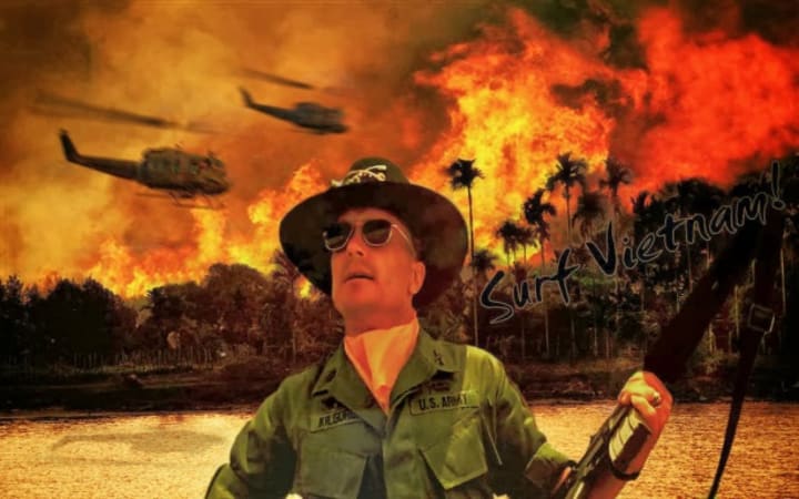 Also noteworthy is the scene in which the helicopters of the Ninth Battalion of the First Cavalry Division (Airborne) bombard the Vietnamese town, all set to the music of Wagner, the "Ride of the Valkyries ", just as the audiovisuals of the Luftwaffe , for cadet instruction.