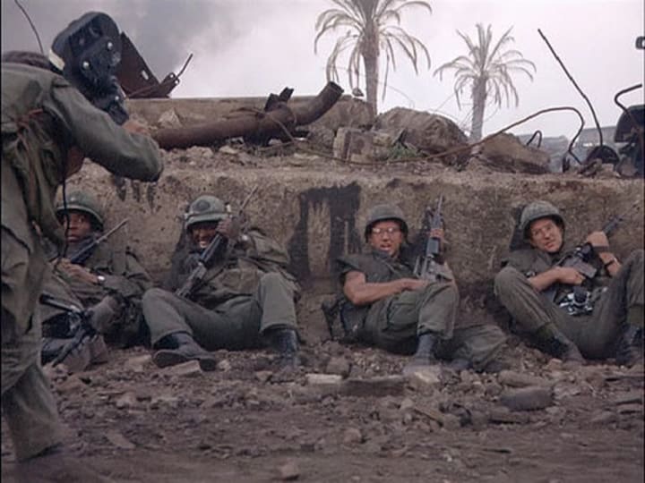 The film has memorable moments within the history of the seventh art, such as its disturbing beginning, where the image of Captain Willard, lying on the bed and looking at the ceiling fan, is mixed with the macabre dance of helicopters flying over the jungle and bombing Napalm , while the song by The End of the group The Doors, serves as a link and gives meaning to the images.
