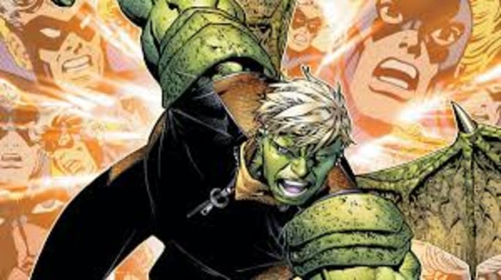 A son being raised by a single Mother, Teddy Altman is unaware of the origins of his enhanced strength and shapeshifting powers (most often using the abilities to mimic the Hulk) when he first joins the Young Avengers. After a confrontation with the Super Skrull, Teddy learns that he is the illegitimate son of the Kree hero, Mar-Vell, and Anelle, a Skrull Princess. Teddy's Mother is actually Anelle's former handmaiden, tasked with smuggling the baby to Earth to avoid having him put to death by the Skrull King.