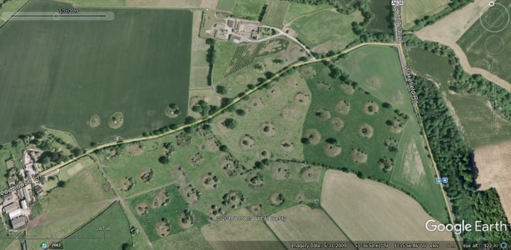 However, just over a mile and a half south by south-west of Bretton stands what is possibly Britain’s largest collection of Bell pits.