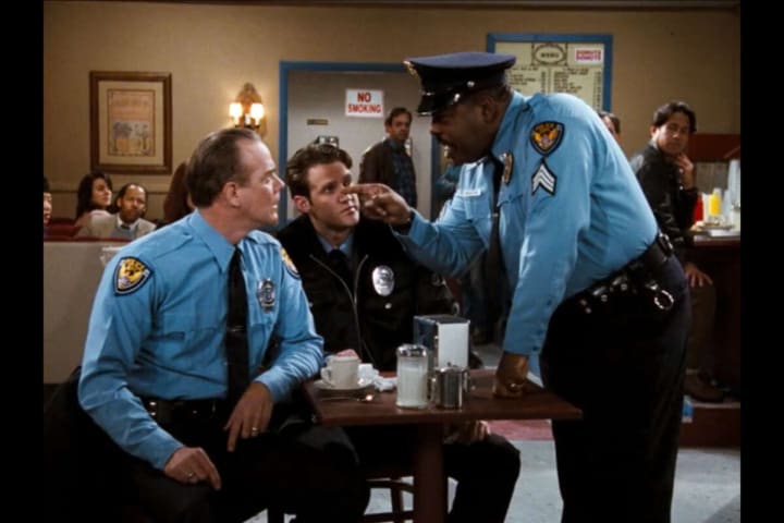 In typical early 90s fashion, the series tackled a lot of pressing issues that still hit us even now. The series was definitely ahead of its time, as one episode centered on Laura's efforts to have Black history taught at her high school, and the racist responses she would receive as well. One episode centered on Eddie developing a drinking habit, while another dealt with guns and gun violence. The one that stands out the most also centered on racism; episode 5.15, "Good Cop, Bad Cop," involved Eddie informing Carl that he was stopped and harassed by a pair of racist cops, though Carl originally questioned the claim due to Eddie attempting to cover up his past traffic violation. Carl's confrontation with the pair confirmed Eddie's statements, and it was a heated and gripping scene that saw the elder of the two cops rightfully called out by Carl, while the younger one was warned about his partner.