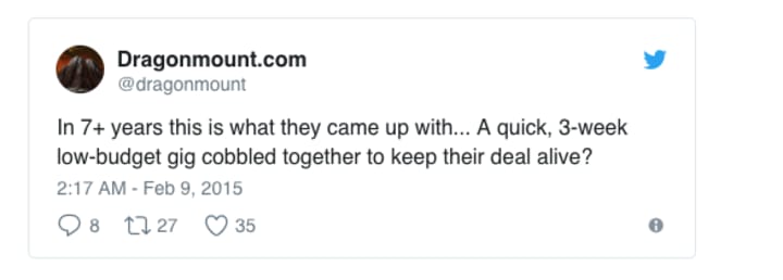 The relationship between Red Eagle and Robert Jordan's estate has been fraught with tension - and even with lawsuits after the estate claimed no knowledge of the pilot. At the time, Red Eagle was negotiating with Sony, and they considered the estate's statement to be damaging to their negotiations — and a breach of contract. The lawsuit was only resolved last year.