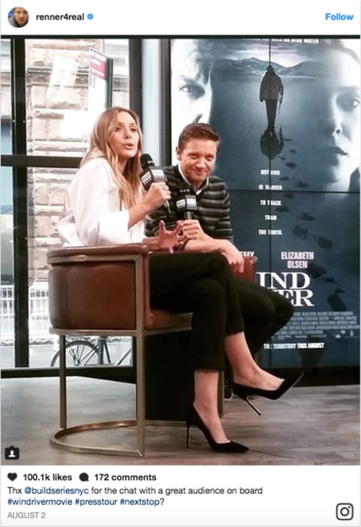 During Avengers: Age of Ultron and Captain America: Civil War, Jeremy Renner has come out to grow fond of his newly found friend and co-star, Elizabeth Olsen. The two recently reunited on the set of Wind River, a mystery crime thriller that's set to hit theaters this Friday. Jeremy Renner expressed to Entertainment Tonight that he has nothing but love for his co-star Scarlet Witch actress Elizabeth Olsen.