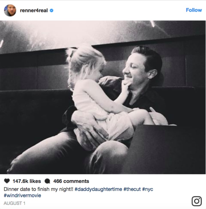 Renner even shared a snapshot of him and his daughter. One of the sweetest pictures the actor could share after a long day of promoting Wind River. The dinner date photo is warm enough it'll even melt your heart.