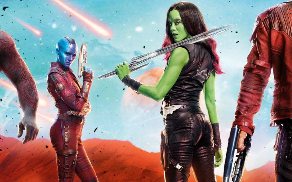 To the credit of Marvel Studios' marketing department, a virtual plethora of promo images were made to alert the masses to the coming of their latest summer blockbuster. However, it was the image of Gamora that seems to have "butt" into my Facebook feed more often than the others. As such, it's impossible to ignore the nagging idea that it all worked out exactly as designed.