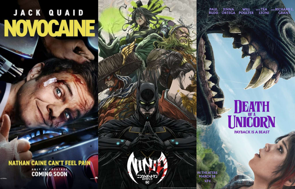 Novocaine, Batman Ninja vs. Yakuza League, and Death of a Unicorn.