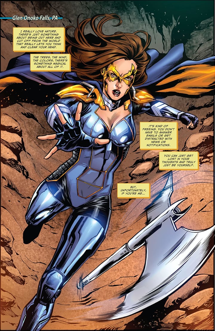 I am a huge fan of the way that this is being told. The story & plot development that we see through how the sequence of events unfold as well as how the reader learns information is presented exceptionally well. I like how Belle is one place and she’s needed elsewhere simultaneously and it’s times like this that her being able to call upon say The Black Knight would be ideal. The character development that we see is fantastic and as the dialogue along with the interaction between characters as well as the way we see them act and react to the situations and circumstances they encounter all help to flesh them out nicely. The pacing is superb and as it takes us through the pages revealing the twists & turns along the way it stresses that we need to see more of Belle!