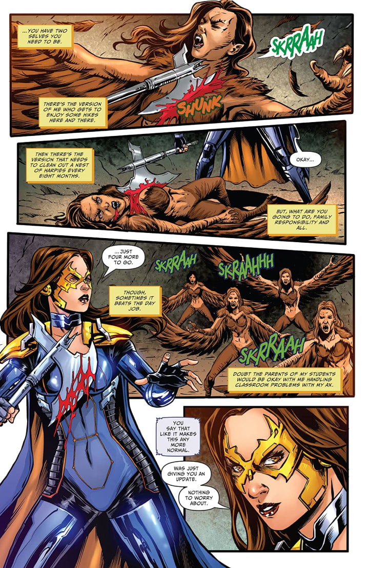 I love Belle! She’s rightfully one of Zenescope's best creations who has been through hell and has found herself alone for the first time in her life as she carries on the family business. Though she has to maintain a day job now in order to save the world at night so as a school teacher she’s able to reach the young minds of tomorrow and do something she loves. Doesn’t make what she and Mel do any easier mind you but nothing is ever going to do that. Still these two women rely upon each other like siblings and that shows up beautifully in their banter back and forth, usually in the middle of a fight. While I love that we keep getting a few one-shots we really need limited series arcs.