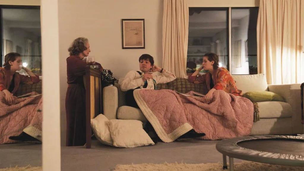 Mum – actually played by Tilda Swinton, who was cast in the film before her daughter – appears in the flat wearing a genteel headscarf and a tweed skirt. It raises a smile when you consider that this is almost certainly not the real Swinton experience at home. Julie is a lovely girl who’s not intentionally freeloading off them, it’s for her older boyfriend Anthony, played by Strike’sTom Burke, who has a thing for opera tickets and drugs.