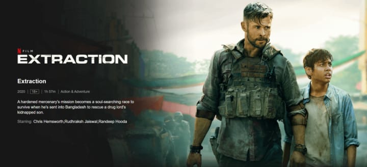 Extraction is 2020 American Action, drama, Thriller Film. This film is directed by the Hollywood best action director Sam Hargrave. Anthony Russo And Joe Russo produce this film. The film is starrer by Chris Hemsworth, Rudhraksh Jaiswal, Randeep Hooda, Golshifteh Farahani, and Pankaj Tripathi.