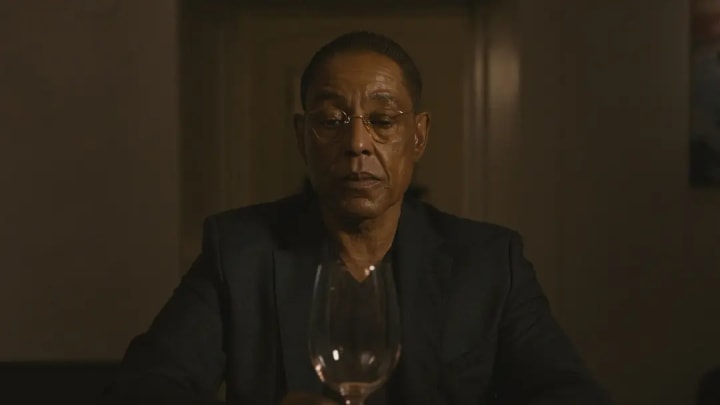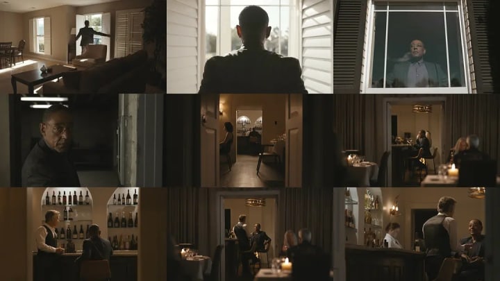 The conversation and tasting scene with the bartender is one of the few moments in the series where Gus shows warmth. Taste the ambiguous sincere feeling that has not seen for a long time, also taste a bloody meat flavour once more however, painful recollection and revenge mission live him afresh frame, alert him to end this adventure actively, return in the mire of drug world.