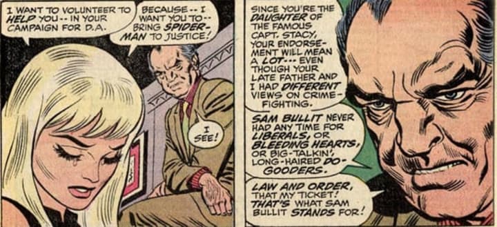 Yup - wearing a mask and webbing criminals to lampposts certainly comes under this definition. As such he’s had quite a tempestuous relationship with the law, facing arrest on many occasions, and has even been incarcerated. In one story arc, several officers disliked Spider-Man so much that they used his Spider-Tracers to frame him for unsolved murders. In another he bore the brunt of Sam Bullit’s vicious political campaign.