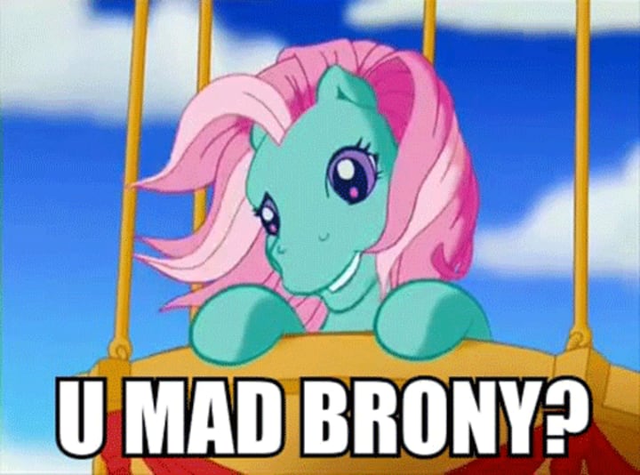 Bronies are a craze sweeping the world, and the franchise has come a long way since the first Hasbro toys were produced in 1981 — it grew into a 1986 TV series, the reimagined 2010 series, and four generations of the toy line. The 2012 documentary Bronies: The Extremely Unexpected Adult Fans of My Little Pony highlighted that it is a case of Bronies before homies, and the fans even have their own convention called BronyCon.