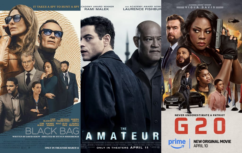 The Amateur, G20 (Prime Video), and Black Bag.