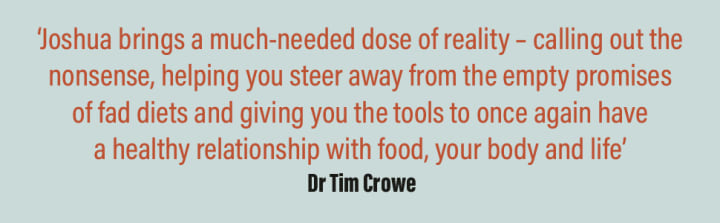Dr Joshua Wolrich tackles some common diet myths by at first, using his own story of not wanting to be an overweight doctor and taking us on a journey of how he became obsessed with weight loss, whilst also ironically sacrificing his health. I'm not going to lie, but at first it does feel like he is presenting health and dieting as two opposing things and I don't know whether that could in fact be just as harmful as doing the opposite. Yes his story is a compelling one and telling us about how he was restricting himself from all the things he liked to eat is something that is very interesting but I genuinely wonder how this applies to the broader range of people and whether it applies to anyone except for a the privileged who can be (ironically) choosy about what they eat. For example: does telling this story just show that privilege he has over others? Probably, in my opinion. But then again, I'm playing devil's advocate. Let's move on.