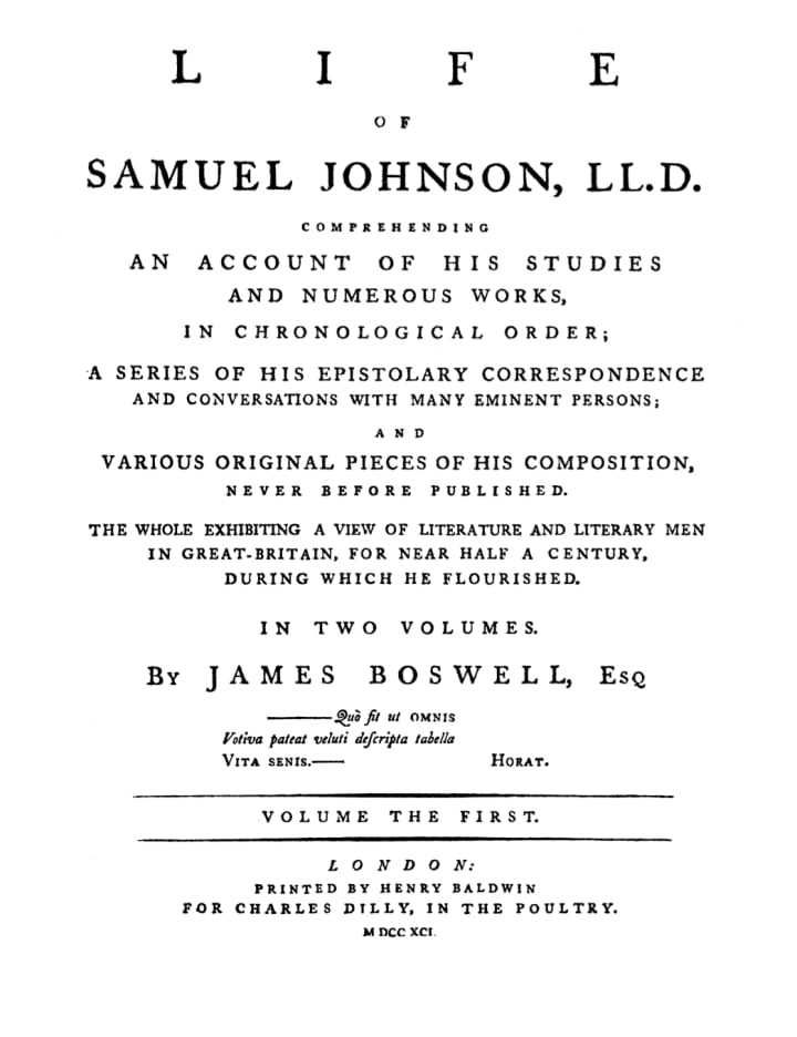 Our author has a bit of anticipation about meeting Dr Johnson, he describes "Dictionary Johnson" (as he was called) as a man who dislike sarcasm though he is also a larger-than-life figure. Before ever encountering him, Boswell has built Johnson into a kind of literary monument, a moral and intellectual giant. There are so many adjectives used to describe the man that pertain to someone who was perhaps giving the 1700s man the same shivers as the 40s scientist would in meeting Albert Einstein. But Dr Johnson doesn't stride in and make his presence slow and dramatic, no, he kind of just appears strikingly almost out of nowhere. His imposing presence seems to fill the room and capture the attention of our author entirely.