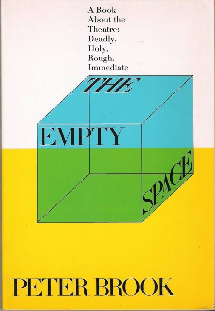 This is where immediate theatre then comes in which relies on the same urgency and focuses yet on the connection that the actor can make immediately with their audience. A very in-the-moment theory which I have no idea how it would really work if it wasn't for Peter Brook's chapter on it within this book shows us that personal connection between actor and audience not only can happen, but in some instances must happen for the theatre to work. I can only imagine that this would work most effectively in a play like Waiting for Godot or something like that.