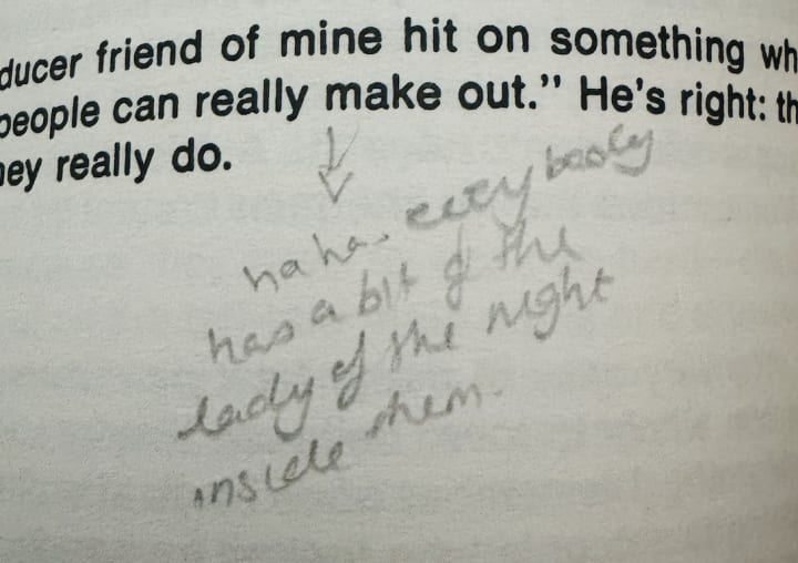 So I was reading the introduction to the book and there's all these annotations in pencil in the book. BUT, it isn't like someone was studying the book for education purposes. These annotations include words like 'hmmm' and 'you know what' and are more than often, passing thoughts. Sometimes, they even have something to do with the annotators own life. And yes, I did read them as I was reading the book because they are quite literally everywhere. When I finished the first chapter, I was wondering where my bookmark was and couldn't find it and so, I tipped the book over to face it down to remember my page. This is when something really strange dropped out of it...