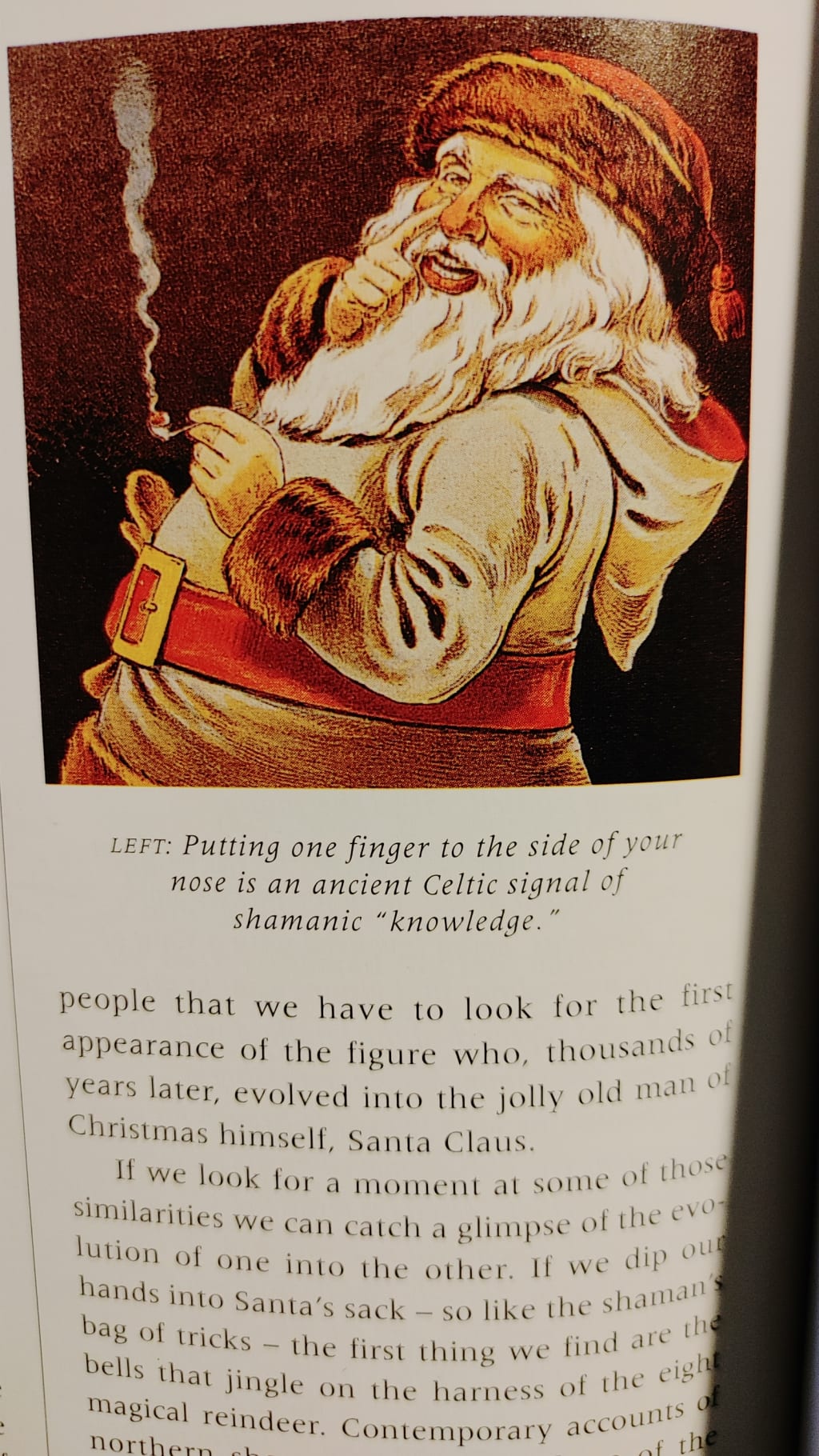 Religious affiliations aside, Santa Claus is the dominant Christmas figure of our time, and his evolution has been weird to say the least. He is a hodgepodge of mysticism, history and commercialism, a true marvel in story telling standards. This book contends the earliest iterations of the gift giver were shamanic individuals that would bring confirmation of the new year and with it, gifts of light and life. The modern notion of Saint Nicholas is a nice way of thinking about gift giving, but if you think too hard about Santa and Saint Nick you will come to the understanding, one of them is lying.