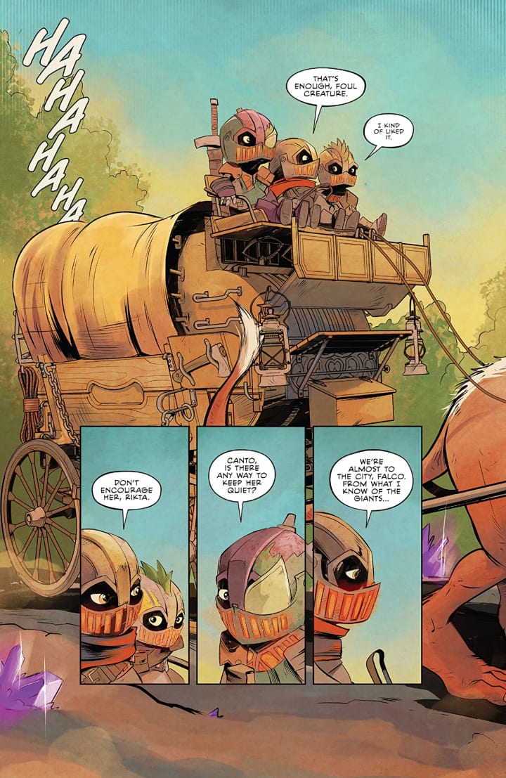 I love Canto this is the best character find since Robin debuted and there is no disputing that fact. This issue what David does with the writing and during Canto’s meeting with the King and Queen says it all. I honestly believe in that moment he won the Queen over with his response and that is as it should be, or at least he was able to garner her respect to a degree. This little guy is one of today’s greatest lesson sharer’s and even the Misturian Witch, who we need to start calling by a proper name, is swayed by his words, actions and loyalty.