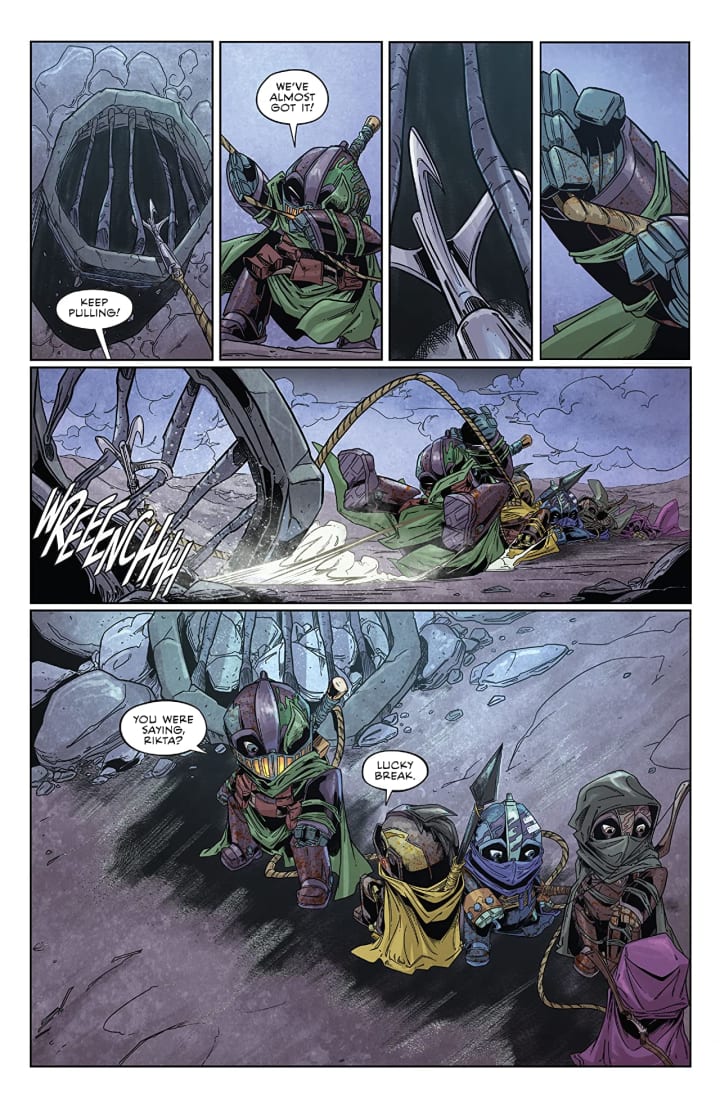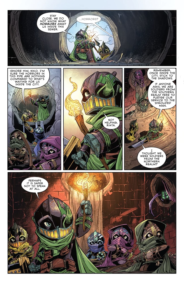Canto and his friend Aulaura continue their search for allies against the Shrouded Man. And while their newest lead is promising, little do they know that the Shrouded Man’s Fury has uncovered the same information! It’s a race to the hidden home of Canto’s former slavers!