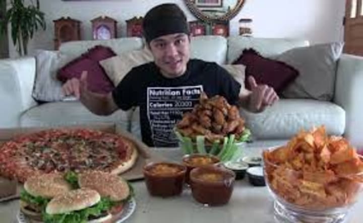 Exhibit A: Matt “Megatoad” Stonie, a 25 year old California native, famous for competitive eating competitions. His largest claim to fame is the above image, a 2015 Nathan’s Hot Dog Eating Championship victory over 8-time hot dog eating champion, Joey Chestnut, before losing the title the following year. With over 4 million YouTube subscribers and over 800 million YouTube views total, Stonie has a net worth of over $500,000 as of 2017, expected to break well over into $1 million, if it has not already.