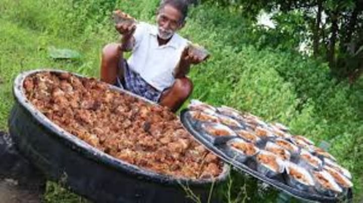 Exhibit B: The other man shown here, is simply called Grandpa. This unknown elderly Indian man buys tons of cooking ingredients at both his own and a crowdfunded cost, to provide hours, even days of his own labor to cook massive amounts of food to feed orphaned Indian children at no cost to them. This is a family endeavor, with his children and grandchildren shooting and editing the footage, and uploading the video to social media and YouTube pages that they operate, to call attention to him.