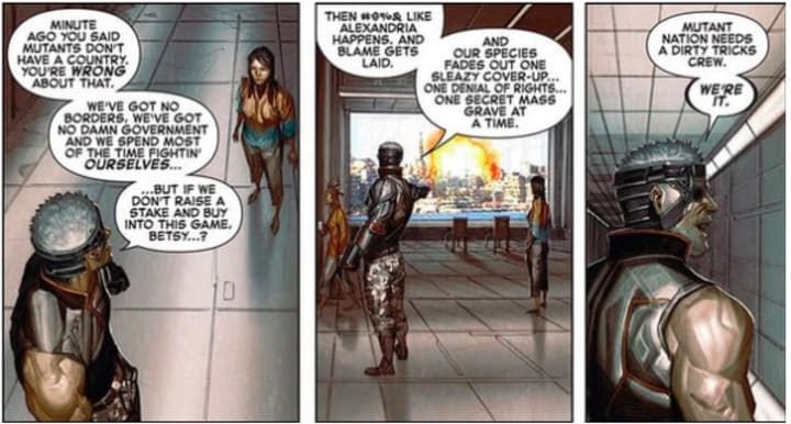 The concept of X-Force captured the mood of the times. These weren't your traditional superheroes; they were antiheroes, and their violence led the older superheroes to watch them with concern. Cable in particular was essentially leading the former New Mutants as a military strike-team to take on threats to the mutant race.