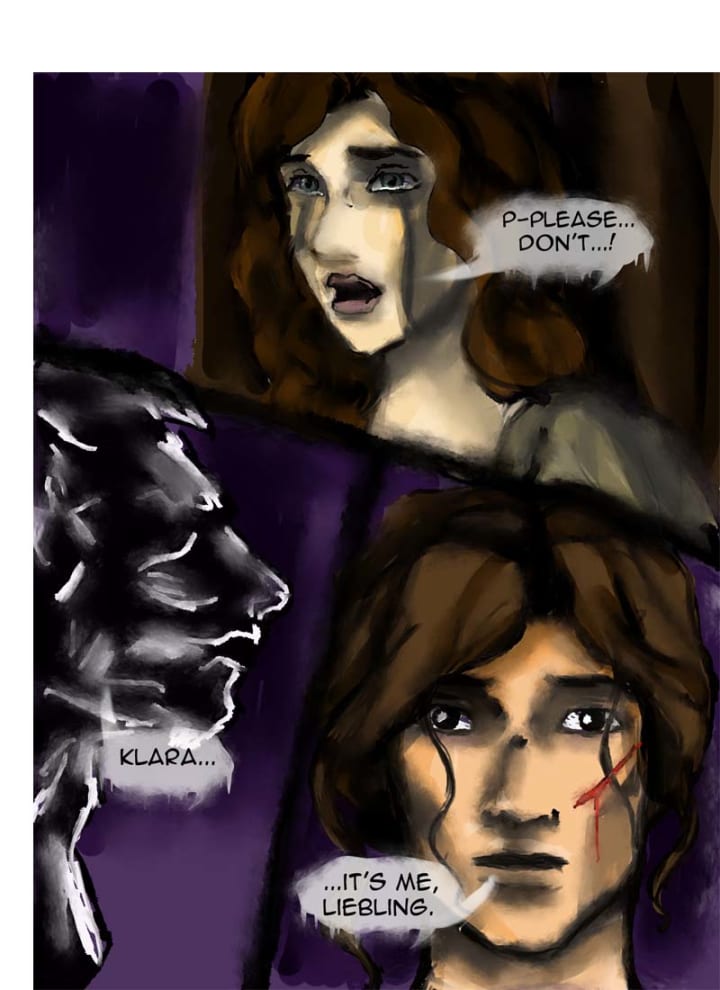 “Klara...” The wolf form started to change back into a man, but instead of Gerrick it was Randolf. “...it’s me, liebling.” he whispered. Klara sobbed with relief when he broke the chains and then cupped her face in his hands.